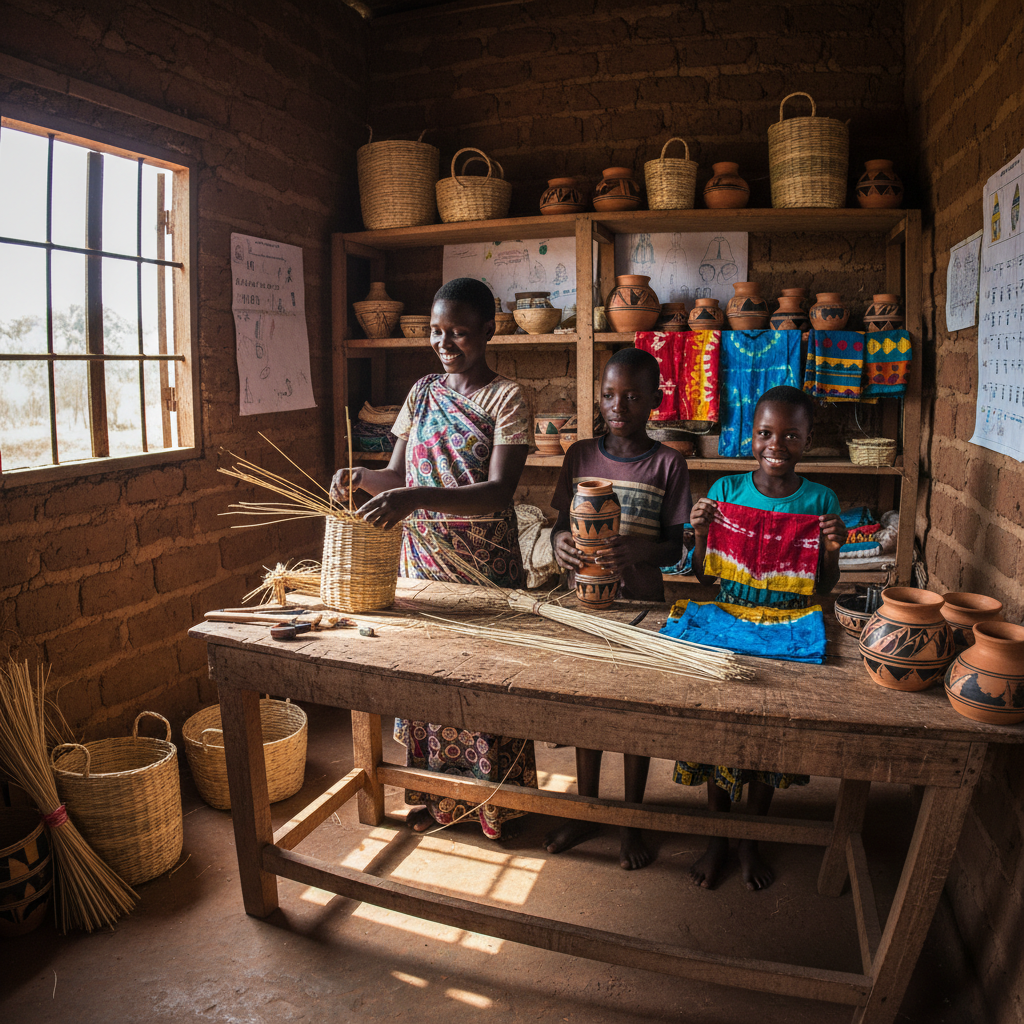 Women entrepreneurs in Uganda working together in a community business setting
